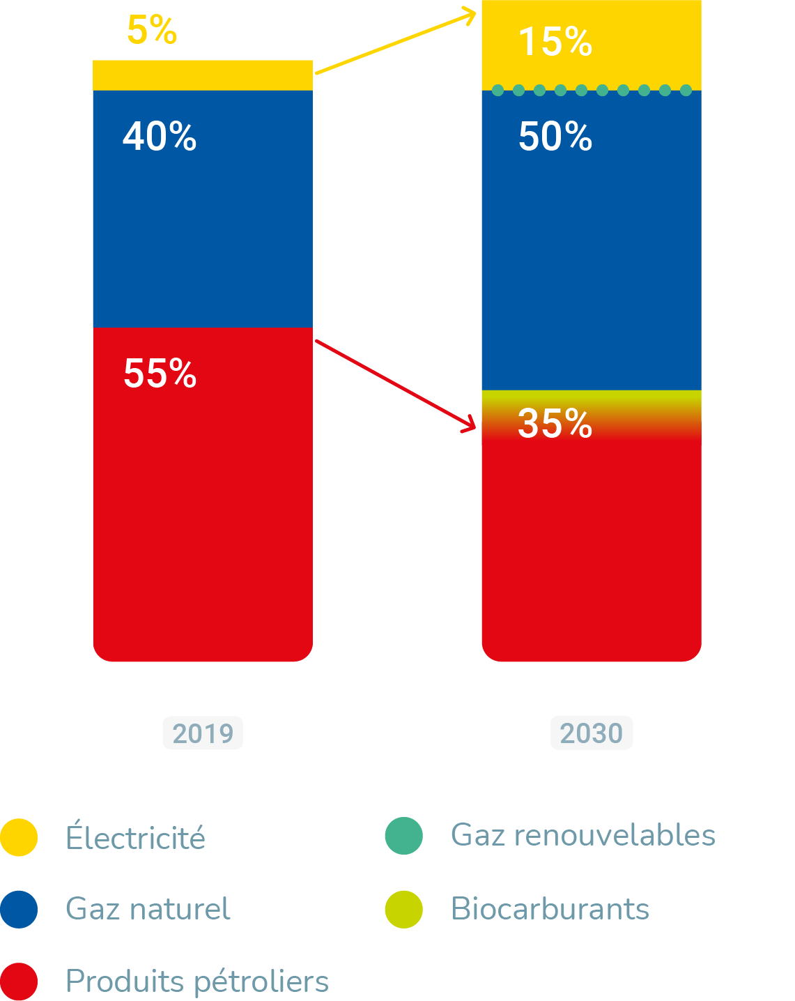 Nous travaillons activement pour faire de la neutralité carbone une démarche partagée avec nos clients. Le principal levier pour contribuer efficacement à la transition énergétique consiste, en effet, à transformer graduellement la forme sous laquelle nos clients consommeront de l’énergie.