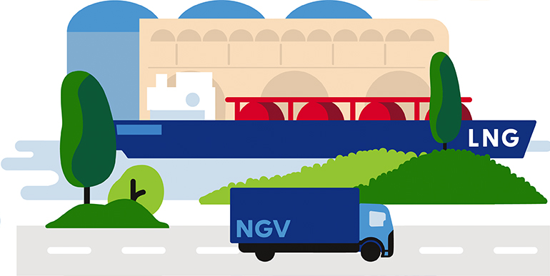 La Compagnie développe aussi de nouveaux usages du gaz naturel – moins émetteur que les carburants pétroliers – dans les transports routier et maritime.
